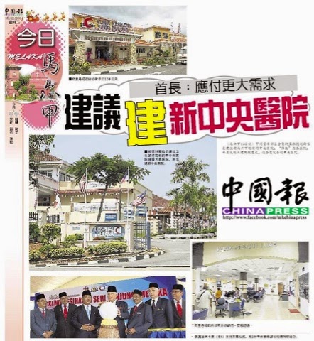 議將馬六甲現有的中央醫院,“降級”為縣醫院,並另覓地